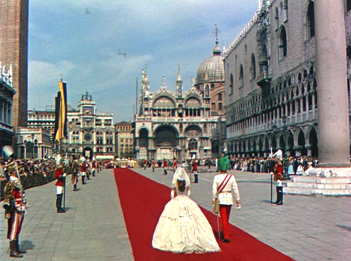At St. Mark's Square, the silence from the crowd is deafening as Sissi and Franz Josef make their way up the red carpet.